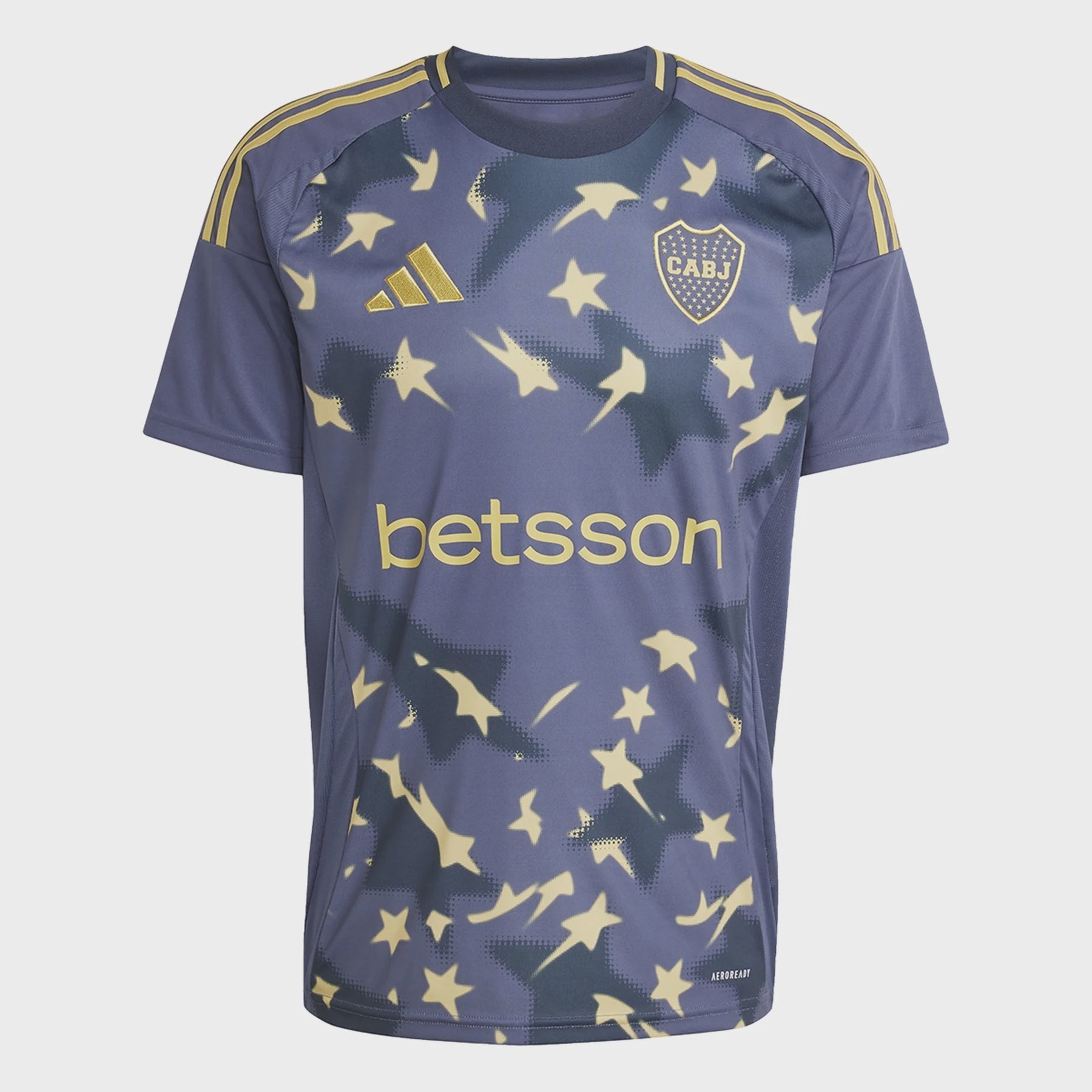 The 2025 Boca Juniors Third jersey is inspired by the stars on the club crest, plus the flags that passionate La Bombonera crowds wave during home games.