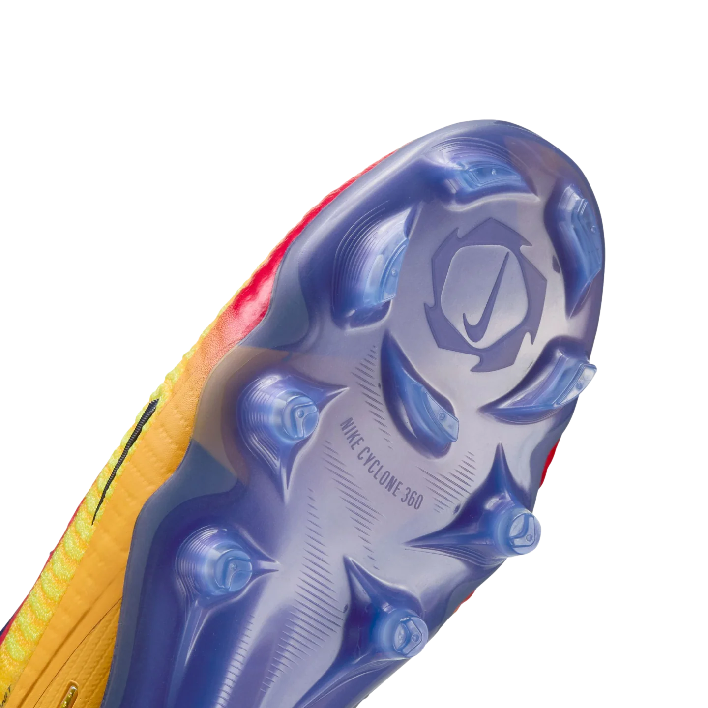 With its icy blue and fiery red and yellow, this Phantom 6 Elite speaks to Erling Haaland’s inner fire—and his goal-scoring eruptions that ensue. It powers his precision with revolutionary Gripknit, a sticky texture that brings his foot closer to the ball and helps put him in control of every opportunity—because missing isn’t an option. It gives him an unfair scoring advantage by combining with the Cyclone 360 traction plate for all those quick cuts.