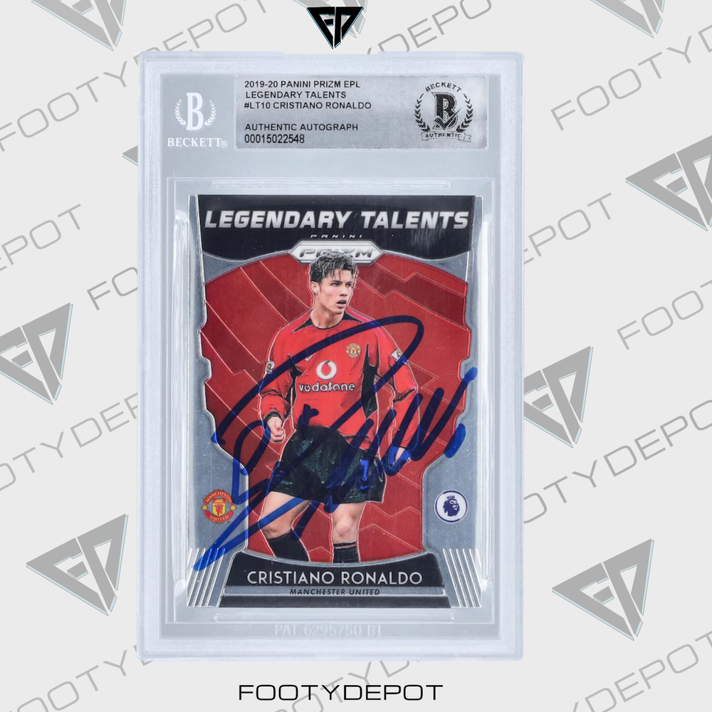 CRISTIANO RONALDO MUFC AUTOGRAPHED 2019-20 EPL PRIZM LEGENDARY TALENTS #LT-10 BAS Authenticated Card