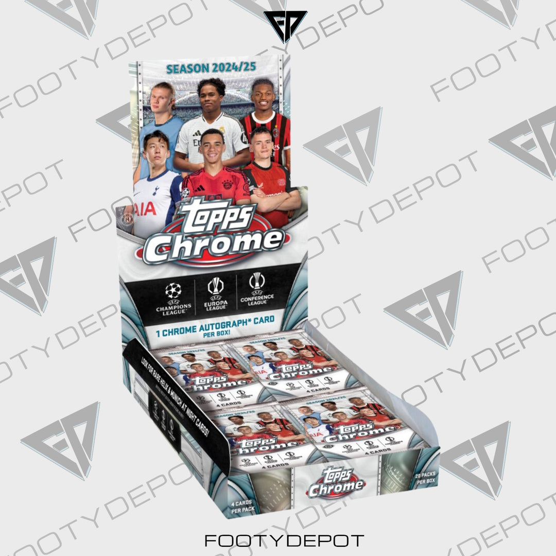2024-25 TOPPS CHROME UEFA CLUB COMPETITIONS CARDS – 20-PACK HOBBY BOX (80 CARDS + AUTOGRAPH)