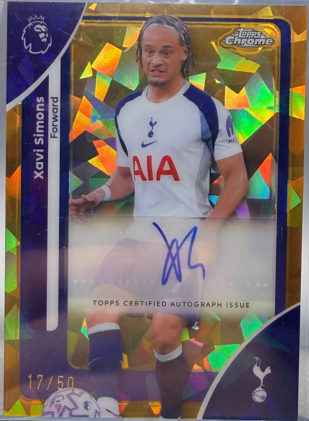 XAVI SIMONS 2026 TOPPS CHROME PREMIER LEAGUE SAPPHIRE GOLD AUTO /50
